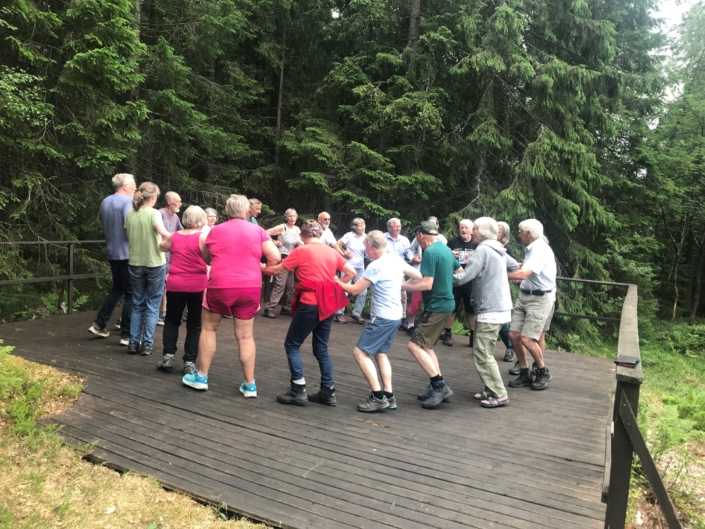 Symra vil fire onsdager 12.11, 19.11, 26.11 og 3.12 -2025 ha et kurs med vekt på turdanser. Bilde: Symra danser på Ålek. Foto Runhild Heggem